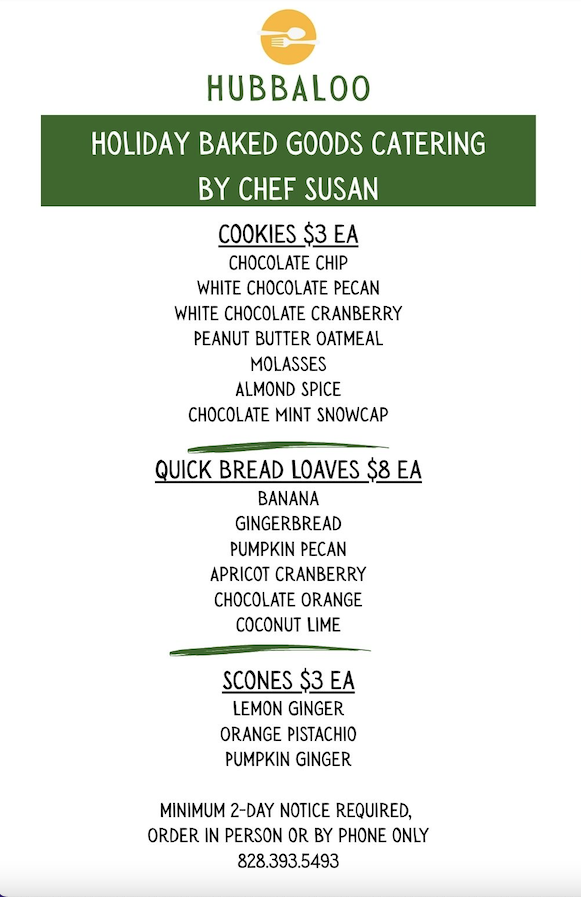Place your holiday orders today! Stop in to reserve your favorites or call 828-393-5493. Minimum 2-day notice required.